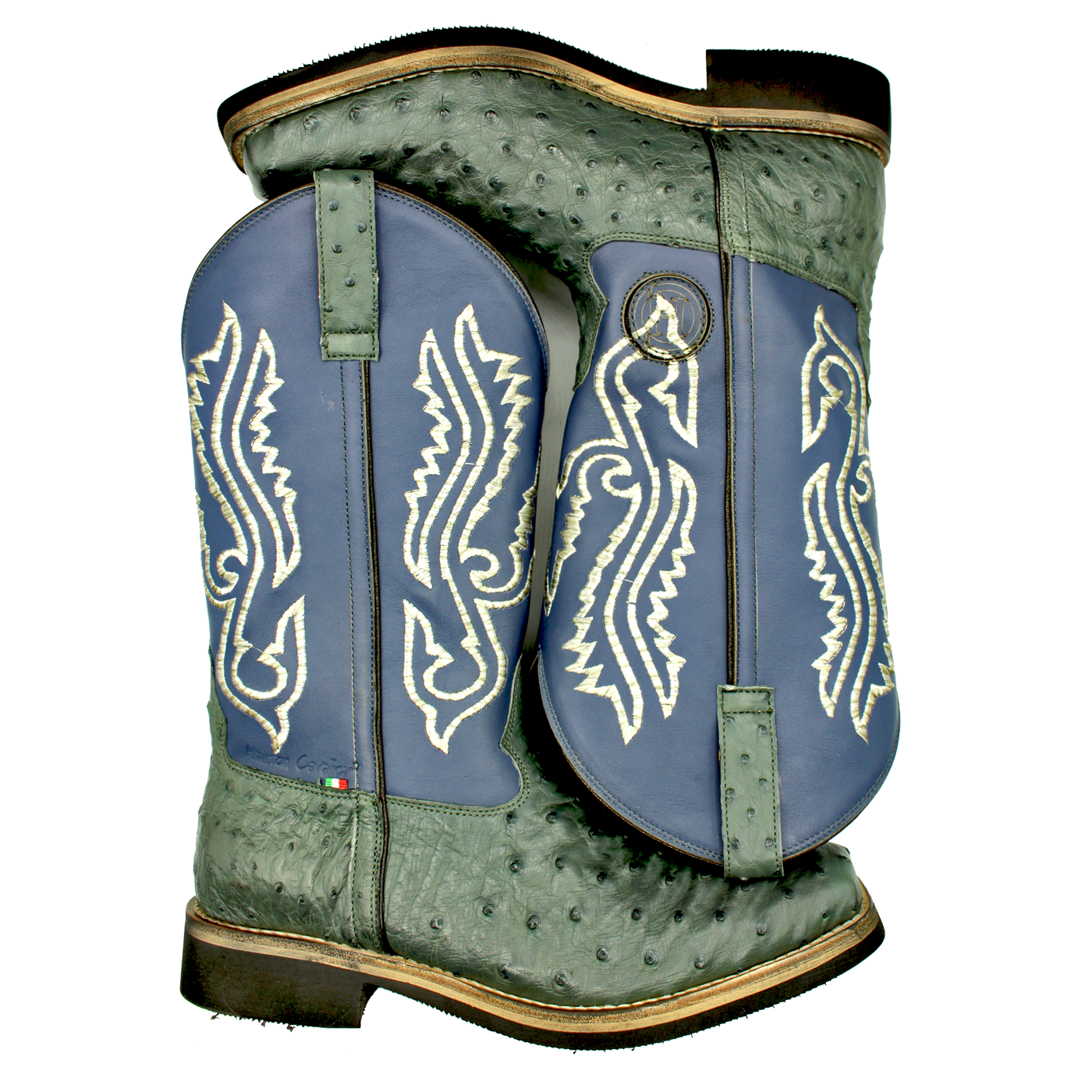 • Gambale in pelle di vitello idrorepellente + ricamo